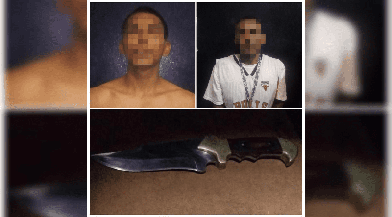 Cabe mencionar que en las inmediaciones de domicilios aledaños a la farmacia se encontraba un presunto coautor, a quien se le encontró un arma prohibida tipo cuchillo aproximadamente de 25 centímetros de longitud, sin embargo fue presentado por posible delito de portación de arma blanca quien dijo llamarse José Leobardo N. de 28 años de edad quien llevaba de vestimenta una playera blanca.