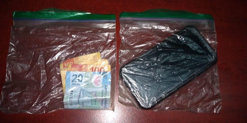 Fue en las calles de Los Bravo e Hidalgo que los agentes municipales lograron detener al presunto ladrón, encontrándolo en posesión de dos billetes de 100 y uno de 20 pesos además de un teléfono marca Huawei color negro.