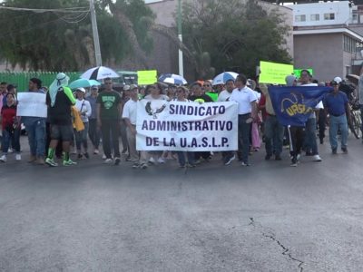 Marcha Sindicato Administrativo de la UASLP; advierte posible emplazamiento a huelga