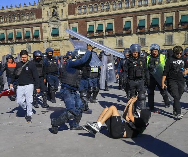 Sin embargo, en el Zócalo de la Ciudad de México la situación cambió abruptamente cuando un grupo de manifestantes encapuchados, identificado como el “bloque negro”, junto con otras personas, derribó parte de las vallas que protegían Palacio Nacional.