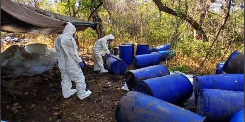 Culiacán.- Fuerzas federales mexicanas localizaron e inhabilitaron cinco áreas de almacenamiento de precursores químicos y un laboratorio clandestino en el estado de Sinaloa, como parte de la «Operación Búsqueda, Localización y Destrucción de Laboratorios Clandestinos».