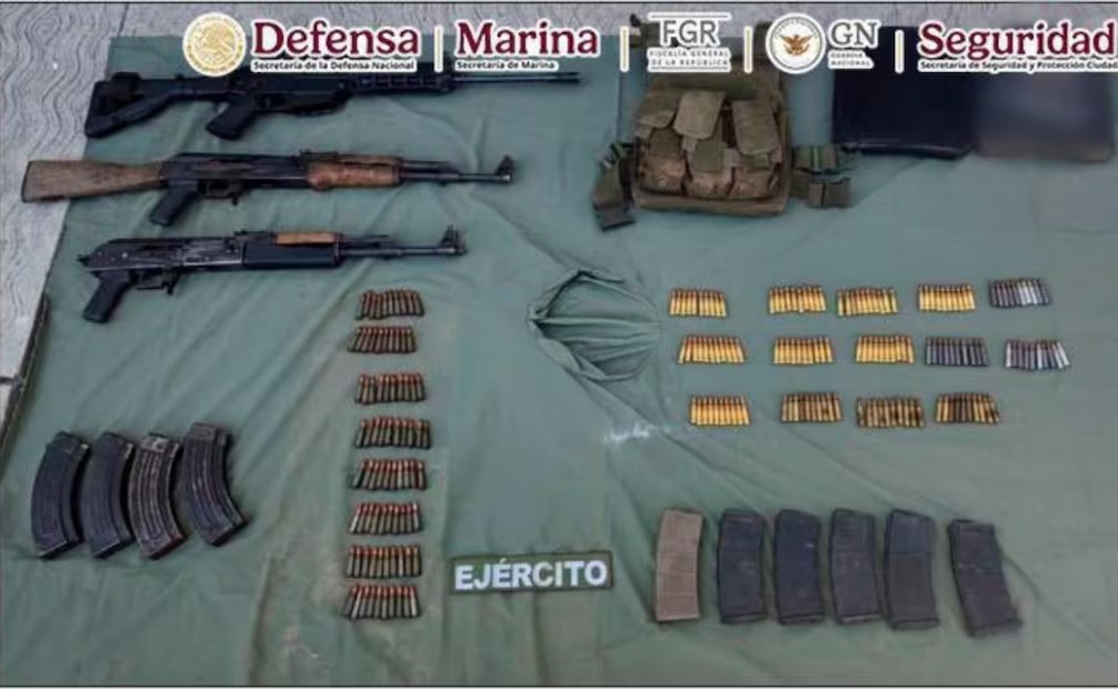 Durante las acciones se decomisaron seis armas largas, más de 200 cartuchos útiles, 11 cargadores, cerca de 15 kilogramos de marihuana, cinco kilogramos de metanfetamina tipo cristal, cuatro vehículos y equipo tecnológico.