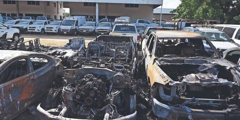 Uno de los hechos más graves ocurrió en una agencia automotriz ubicada sobre la carretera Villahermosa–Cárdenas, donde fueron incendiados ocho vehículos.