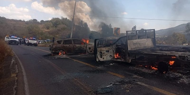 Operativo en Michoacán deriva en ataques e incendio de camiones por crimen organizado