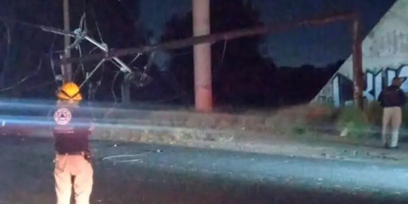 Poste metálico se parte en dos en carretera 57; provoca apagón y daños en vehículos