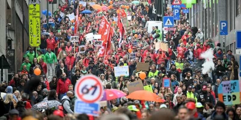 Las protestas continuarán este martes con paros en sectores esenciales como educación y salud y concluirán el miércoles con una huelga nacional que implicará la cancelación total de vuelos en los aeropuertos de Bruselas y Charleroi.